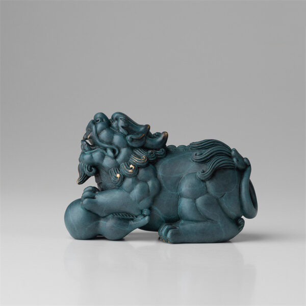 “Tượng Tỳ Hưu Ngọc Long Tọa Bảo” là tác phẩm điêu khắc tinh xảo mang phong cách cổ điển, với lớp màu xanh ngọc huyền bí và bề mặt mịn màng. Tượng mô phỏng hình ảnh tỳ hưu nằm yên trên viên bảo, biểu tượng cho sự bình an, sung túc và tài lộc bền vững. Đường nét sắc sảo, cơ bắp săn chắc tạo nên sức mạnh uy phong, đồng thời toát lên vẻ đẹp nghệ thuật hài hòa. Đây là món đồ phong thủy lý tưởng để trang trí phòng khách hoặc bàn làm việc, giúp thu hút may mắn và bảo vệ gia chủ khỏi năng lượng tiêu cực.