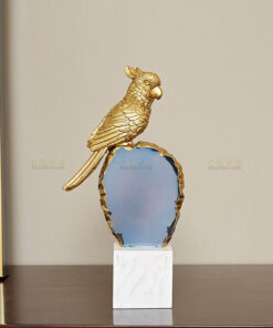 Tượng Vẹt Đá Thạch Anh Xanh Đế Cẩm Thạch trang trí phòng khách