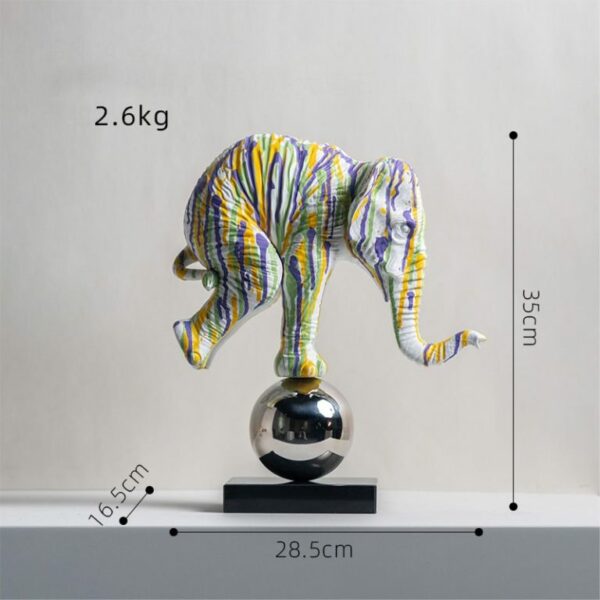 Thiết kế tượng không chỉ đẹp mắt mà còn thể hiện sự tỉ mỉ trong từng đường nét, từ các nếp gấp trên thân voi đến sự cân đối hoàn hảo khi đứng trên quả cầu. Kích thước vừa phải giúp tượng dễ dàng bố trí trong nhiều vị trí, từ phòng khách, phòng làm việc đến các kệ trang trí hay bàn tiếp khách.
