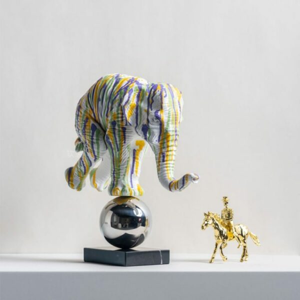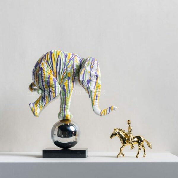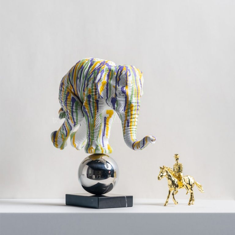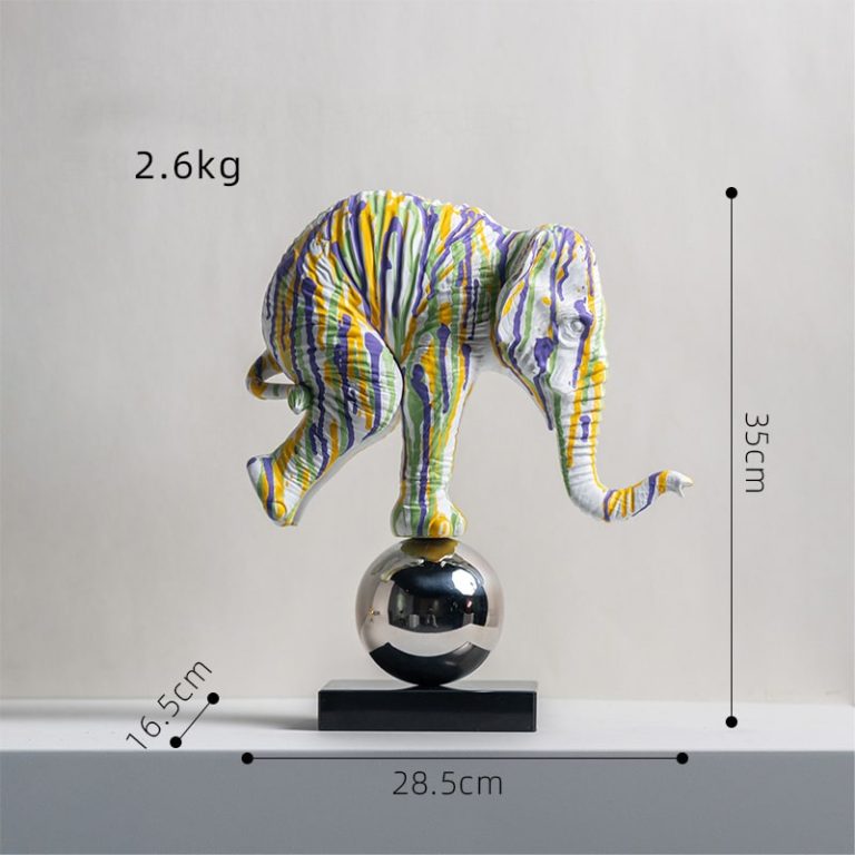 Quả cầu kim loại mà con voi đứng cân bằng trên đó tượng trưng cho sự vững chắc, sự kiểm soát tốt mọi yếu tố trong cuộc sống và kinh doanh. Điều này gửi gắm lời chúc về một hành trình thịnh vượng, ổn định, luôn vững vàng vượt qua mọi thử thách, đem lại thành công và may mắn bền lâu cho gia chủ.