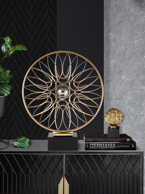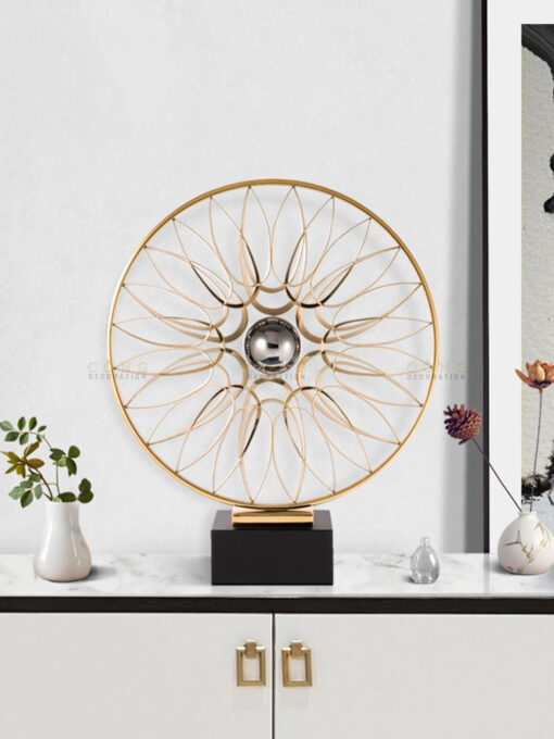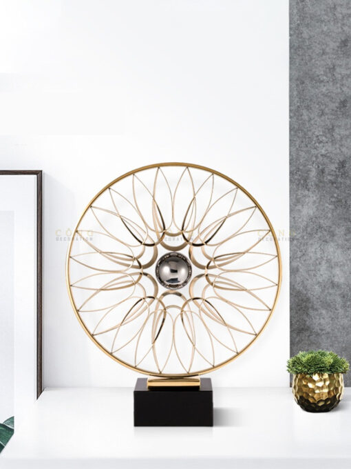 “Tượng Vòng Nguyệt Hoa Tâm Rạng Ngời” là một tác phẩm nghệ thuật tinh tế, mang vẻ đẹp hiện đại và đầy ý nghĩa. Thiết kế vòng tròn cân đối tượng trưng cho sự viên mãn và hài hòa, kết hợp cùng họa tiết hoa cúc mềm mại tạo cảm giác nhẹ nhàng, thanh thoát. Tượng sử dụng chất liệu kim loại mạ vàng sáng bóng cùng đế gỗ đen sang trọng, làm nổi bật sự quý phái và tinh tế cho không gian sống hay làm việc. Sản phẩm là điểm nhấn hoàn hảo, giúp tạo nên không gian ấm cúng, đẳng cấp và lan tỏa nguồn năng lượng tích cực cho gia chủ.