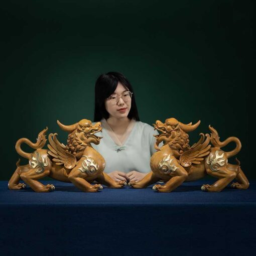 Tượng Tỳ Hưu Cổ Đại Uy Mãnh Bằng Đồng được thiết kế theo phong cách cổ điển, với hình dáng mạnh mẽ và chi tiết tinh xảo. Đôi cánh lớn và dáng đứng vững chắc của Tỳ Hưu không chỉ mang lại vẻ đẹp uy nghi mà còn thể hiện sự bảo vệ tuyệt đối, như một “người gác cổng” trung thành cho gia đình.