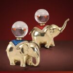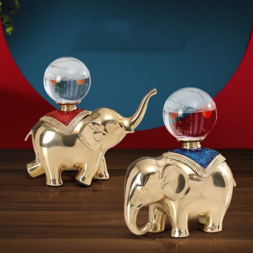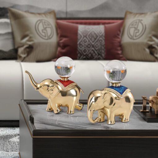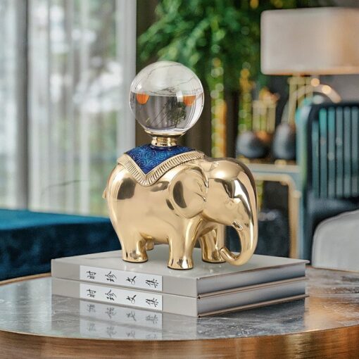 Tượng voi vàng là linh vật phong thủy mạnh mẽ giúp thu hút tài lộc và vận may cho gia chủ. Đặc biệt, hình tượng voi kết hợp quả cầu pha lê tạo ra nguồn năng lượng tích cực, giúp gia đình và công việc luôn gặp thuận lợi.