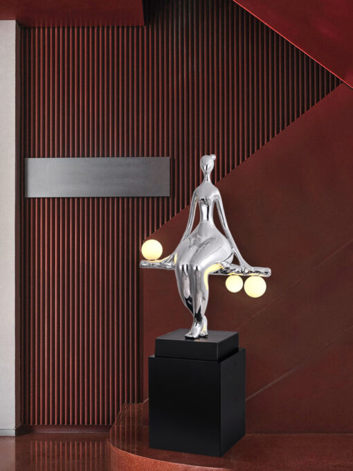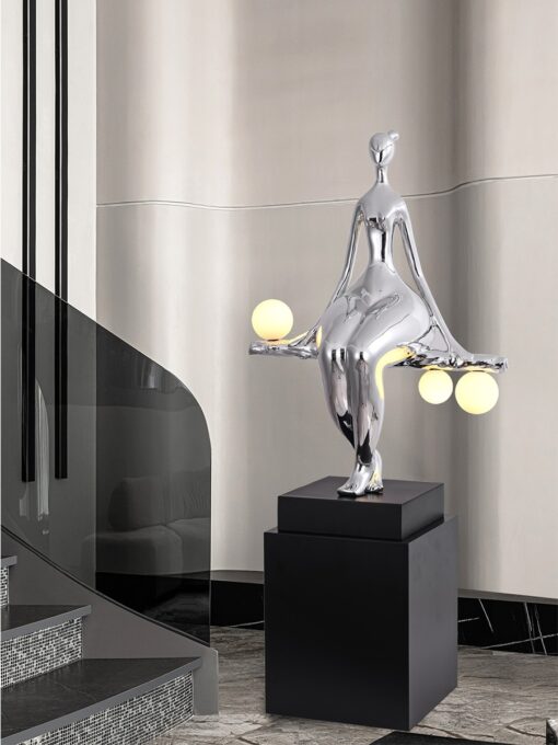 Tượng vũ điệu ánh sáng kết hợp đèn trang trí màu bạc mạ điện