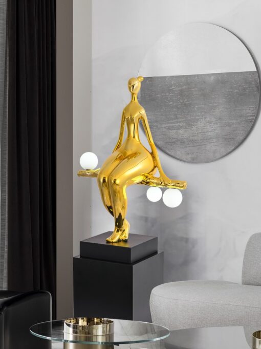 Tượng vũ điệu ánh sáng kết hợp đèn trang trí màu vàng mạ điện