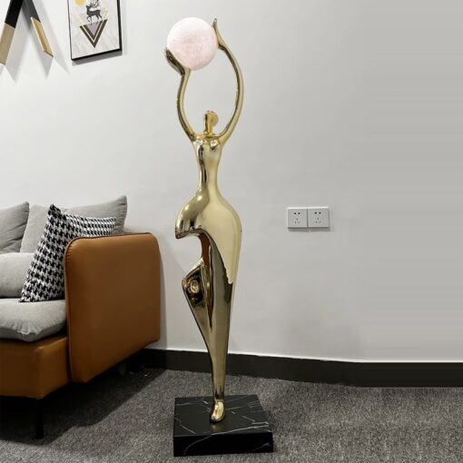 Hình ảnh vũ công với động tác vươn cao, uyển chuyển, biểu thị sự thanh thoát và tự do. Đặc biệt, ánh sáng phát ra từ quả cầu ở phần tay vũ công như tạo điểm nhấn, mang lại hiệu ứng thị giác cuốn hút. Đây không chỉ là món đồ trang trí phòng khách, mà còn có thể đặt tại các không gian như sảnh lớn, phòng ngủ hay phòng làm việc để tăng sự ấm cúng và sang trọng.