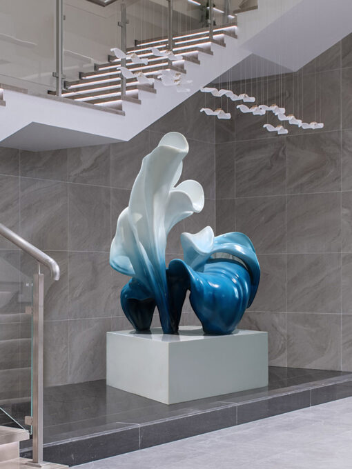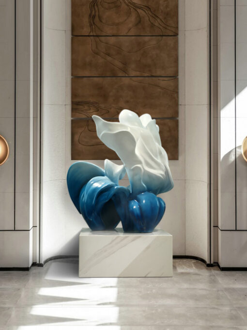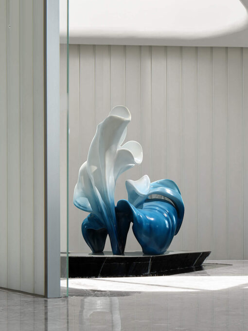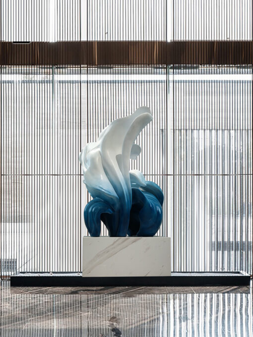 “Tượng ‘Vũ Điệu Biển Xanh Trang Trí Sảnh’ mang đến sự mềm mại và uyển chuyển như những con sóng biển dịu dàng. Với màu sắc chuyển gradient từ trắng sang xanh dương, tượng tạo điểm nhấn thanh thoát, đầy sức sống cho không gian rộng lớn. Thiết kế độc đáo như một điệu múa của biển cả, tượng thích hợp trang trí ở sảnh lớn, mang lại cảm giác bình yên và sự tươi mới, làm hài hòa mọi ánh nhìn trong không gian hiện đại.”